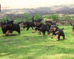 We breed Rottweilers with famous German pedigrees and lines. All adult Rottweilers and rottweiler puppies possess sound temperaments, healthy powerful bodies, excellent massive bone structure, working ability, and extremely high intelligence. These dogs are calm, trainable, protective, courageous and devoted to their owners and family. Obedience training is essential.
