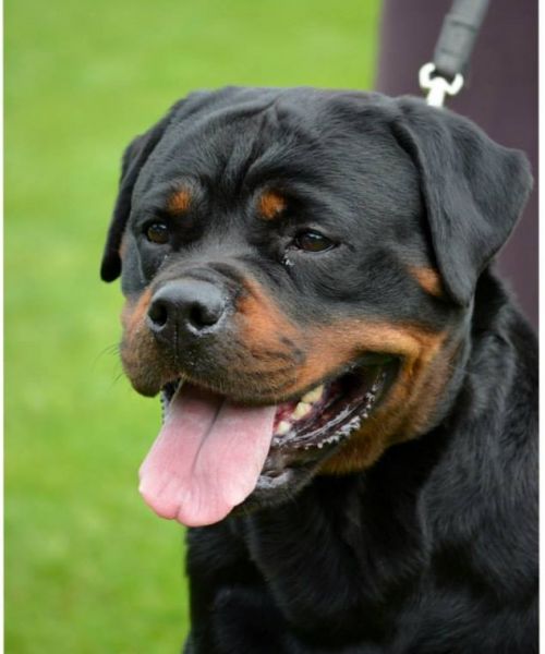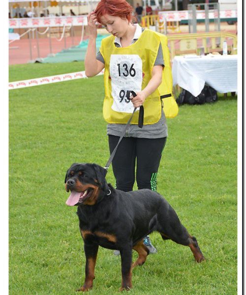 groß, umgänglich , aufmerksam, sehr gute Knochenstärke, harmonisch und typvoll in der Erscheinung, sehr guter Kopftyp, mittelgroße, korrekt getragenen Ohren, 1a Auge, kurzer, kräftiger, vitaler Fang mit hervorragenden dunklen Maulpigmenten, Lefzen sollten etwas straffer anliegen, sehr gut bemuskelter Hals, Vor-und Hinterhand sehr gut gestellt und gewinkelt, Brust in natürlicher Breite und Tiefe, Pfoten etwas weich gestellt, nicht ganz geschlossen, gut bemuskelte Keulen, gut bemuskelter Rücken mit leicht abfallender Kruppe und hängend getragener Rute, natürliche Ganganlagen mit etwas fehlendem Schub aus der Hinterhand, rotbrauner Brand, korrektes, gepflegtes Stockhaar