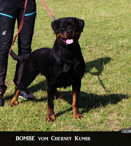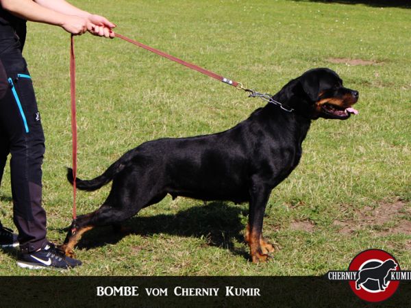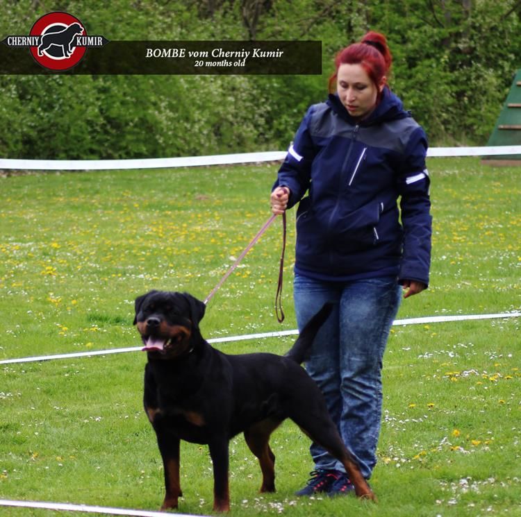 mittelgroß, knochenstark, etwas gestreckt, sehr gute Substanz, schöner kräftiger Hündinnenkopf, mittelgroße Ohren, korrekt getragen, sehr guter Stop, tiefbraune Augen, kräftiger Fang, Maulpigmente dunkel, Lefzen leicht rosa, kräftiger, langer, schwanenförmiger Hals, sehr gute Vorbrust, sehr gute Brustbreite und -tiefe, Vordermittelfuß rechts leicht ausdrehend, kräftiger, breiter Rücken, sehr gut gewinkelte Hinterhand, Rute bei Erregung säbelförmig getragen, leichte Kruppenrundung, sehr gut bemuskelte Keule, gesundes Stockhaar, rostbraune Abzeichen, auf den Vorderläufen leicht schwarz, im Nacken leicht grau gesprenkelt, kräftige Sprunggelenke, sehr guter Vortritt mit mittlerem Schub aus der Hinterhand